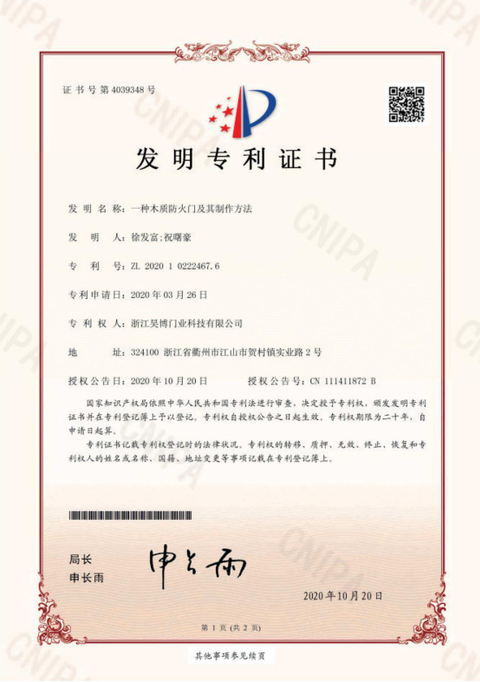 公司一直以來嚴(yán)格執(zhí)行ISO9001質(zhì)量體系和ISO14001環(huán)境管理體系標(biāo)準(zhǔn),建立了完備的科研、開發(fā)、生產(chǎn)、銷售服務(wù)體系。公司是浙江省門業(yè)協(xié)會(huì)會(huì)員單位,江山門業(yè)協(xié)會(huì)理事單位,中國木材與木制品流通協(xié)會(huì)會(huì)員單位,江山市消防協(xié)會(huì)副會(huì)長單位。